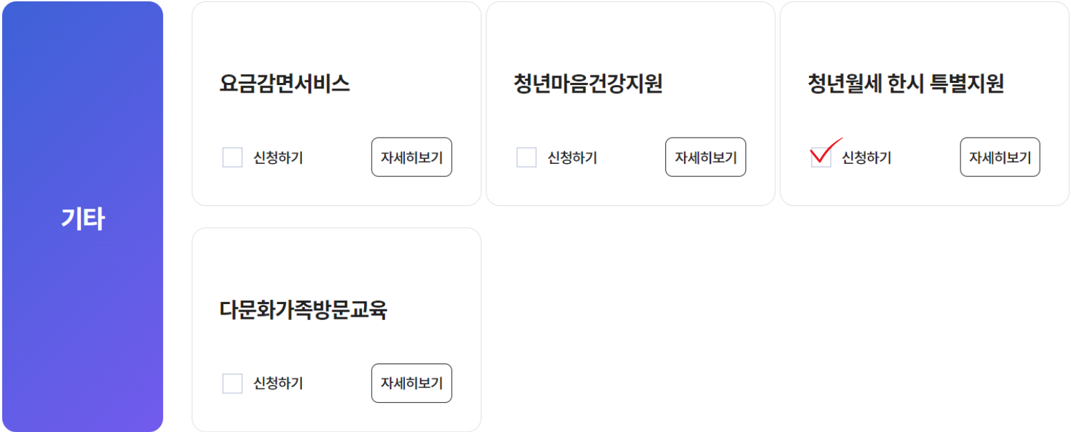 청년월세 한시 특별지원에 신청하기를 누르시면 됩니다.